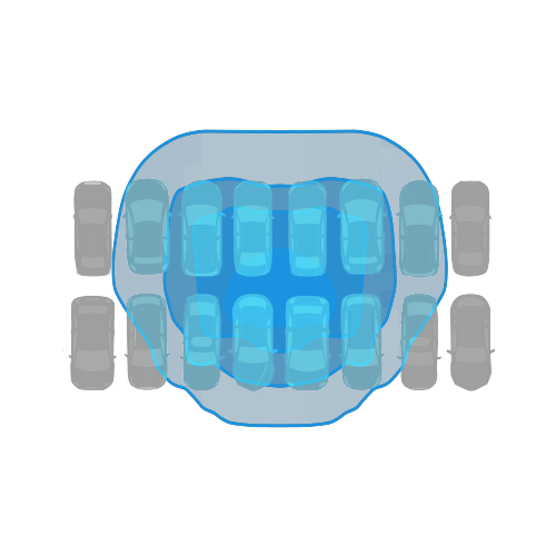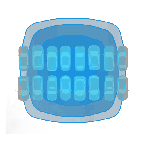 (15°) Enables cars to be highlighted on raised display pods from up to 50 feet away using the same perimeter display poles.