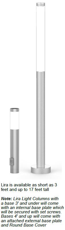 – Column is offered in two possible overall heights: LIR-6 can measure from 3 to 14 feet tall; LIR-8 can measure from 3 to 17 feet tall